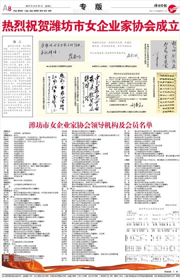 热烈祝贺潍坊市女企业家协会成立